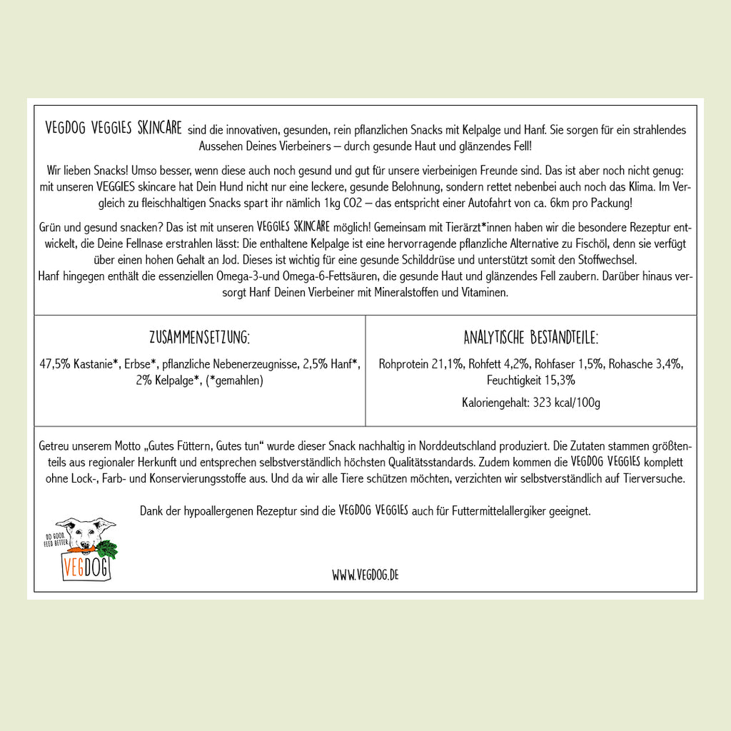 VEGDOG Veggies Skincare – Vegane Leckerlis mit Kastanie, Hanf und Kelpalge