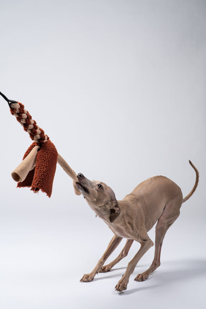 Unser neues Karma Hund Bungee-Tau ist das perfekte Spielzeug für energiegeladene Hunde, die Zieh- und Zerrspiele lieben. In unserer hauseigenen Manufaktur in Berlin-Weißensee fertigen wir jedes Stück in liebevoller Handarbeit, nachhaltig aus hochwertigen Materialresten und mit echter Hundeliebe.